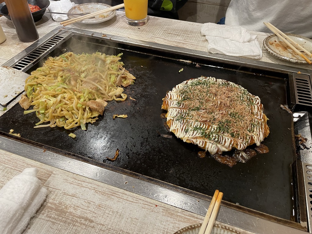 2日目のお昼は、月島でもんじゃを食べました。もんじゃだけでなく、厚切りベーコンに、海鮮に、お好み焼きに、焼きそばまで。美味しい鉄板焼きに夢中になりすぎて、もんじゃの写真も撮り忘れました…笑