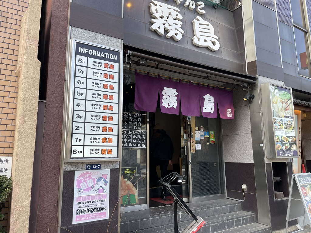 初日のお昼は、両国国技館の近くまで移動してちゃんこ鍋を食べました。なんと、地下1階から8階まで全部ちゃんこ屋さん。