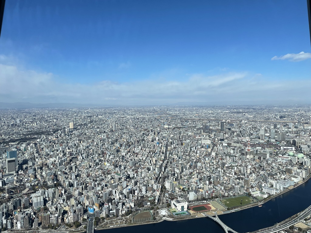 最初の行先は、東京スカイツリーです。今回は、展望台のさらに上、特別展望台まで行きました。スカイツリーに上ったことがない人が多く、とてもいい体験でした。