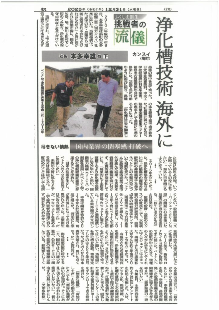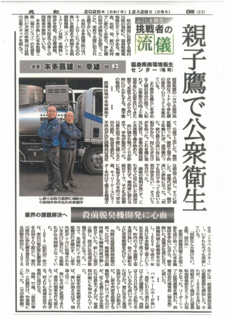 2025年12月29日から12月30日の3日間に渡り、福島民報新聞に弊社の会長 本多昌雄と代表取締役 本多幸雄の取り組みが紹介されました。